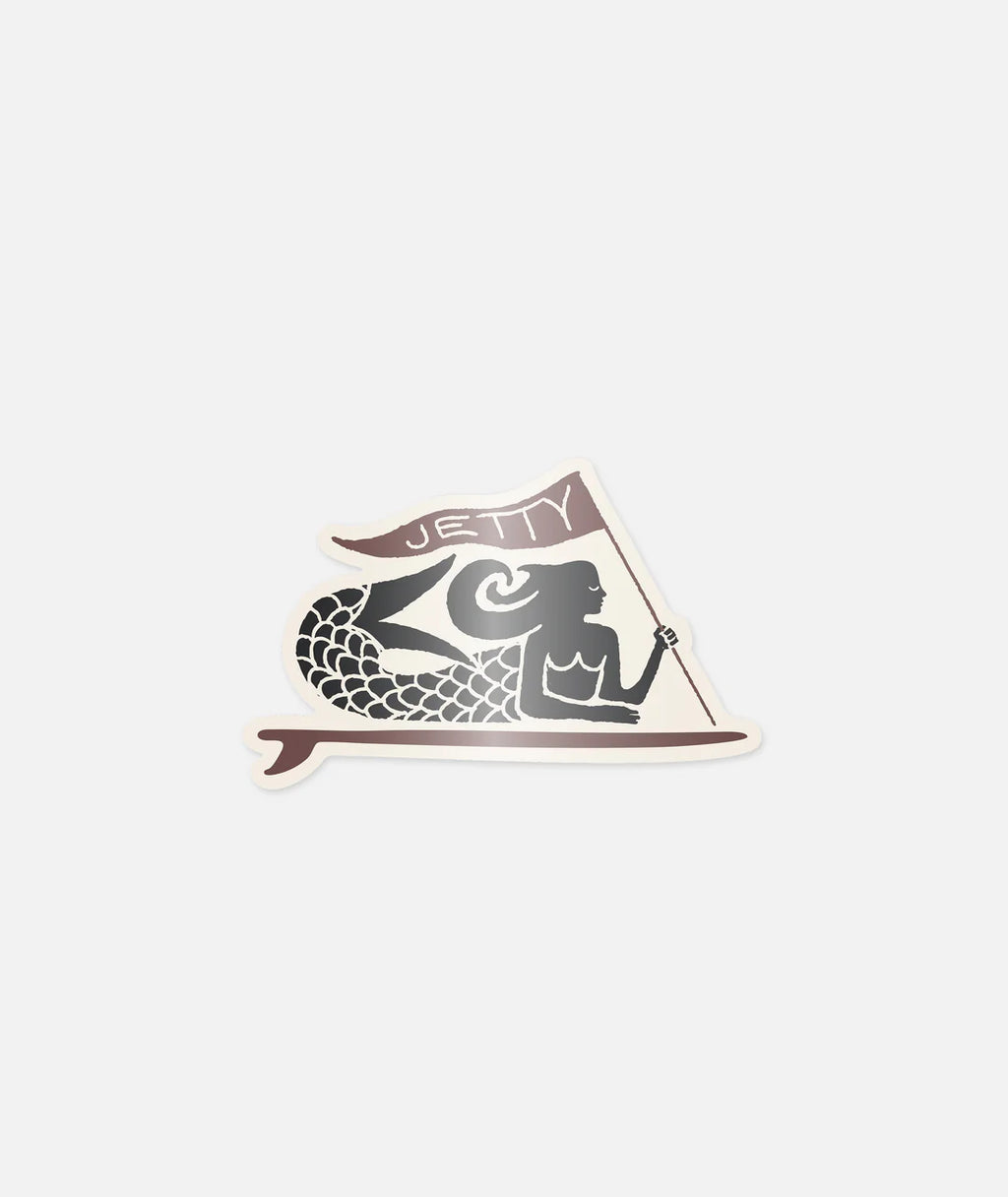 Jetty Mermaid Sticker - Ocean mythology artwork. Beautiful mermaid graphic sticker celebrating coastal legends and sea creature folklore.